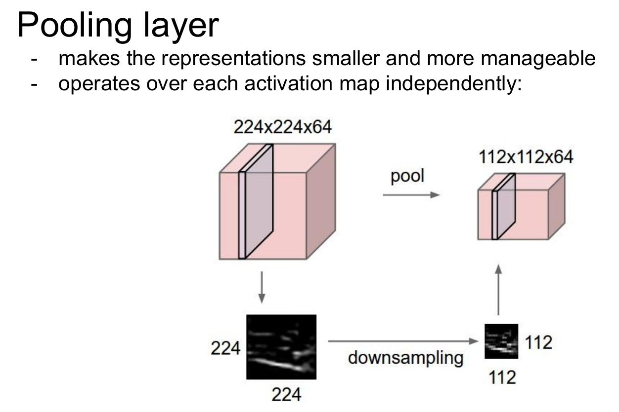 Pooling Layer는 activation map을 입력으로 받아 크기를 줄여 특징을 강화-추출하기 위한 용도로 사용합니다. 연산을 간소화해주는 역할도 수행합니다. 이미지의 픽셀을 줄이면 같은 크기의 필터에 더 많은 부분을 투영할 수 있습니다. 그렇다면 pooling을 반복할수록 점점 전체적인 특징을 추출(추상화)하는 것이 가능해질 것입니다.